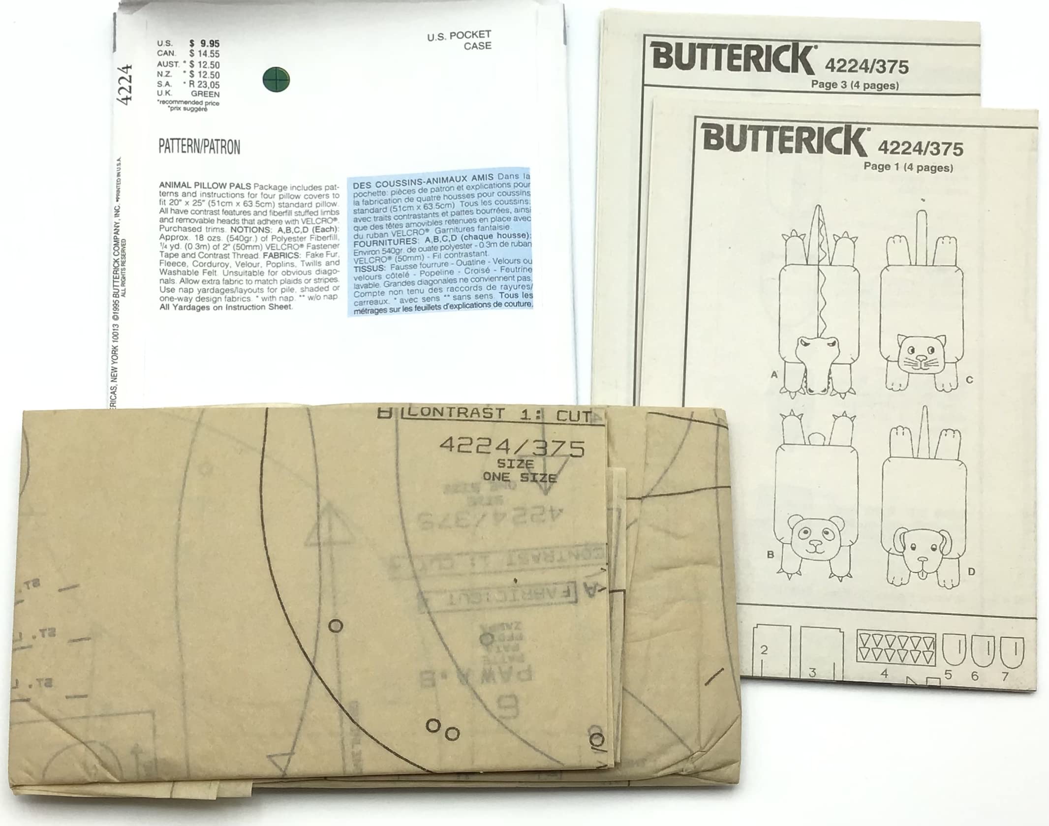 Amazon Com Butterick 4224 Sewing Pattern Animal Pillow Pals Size One Arts Crafts Sewing